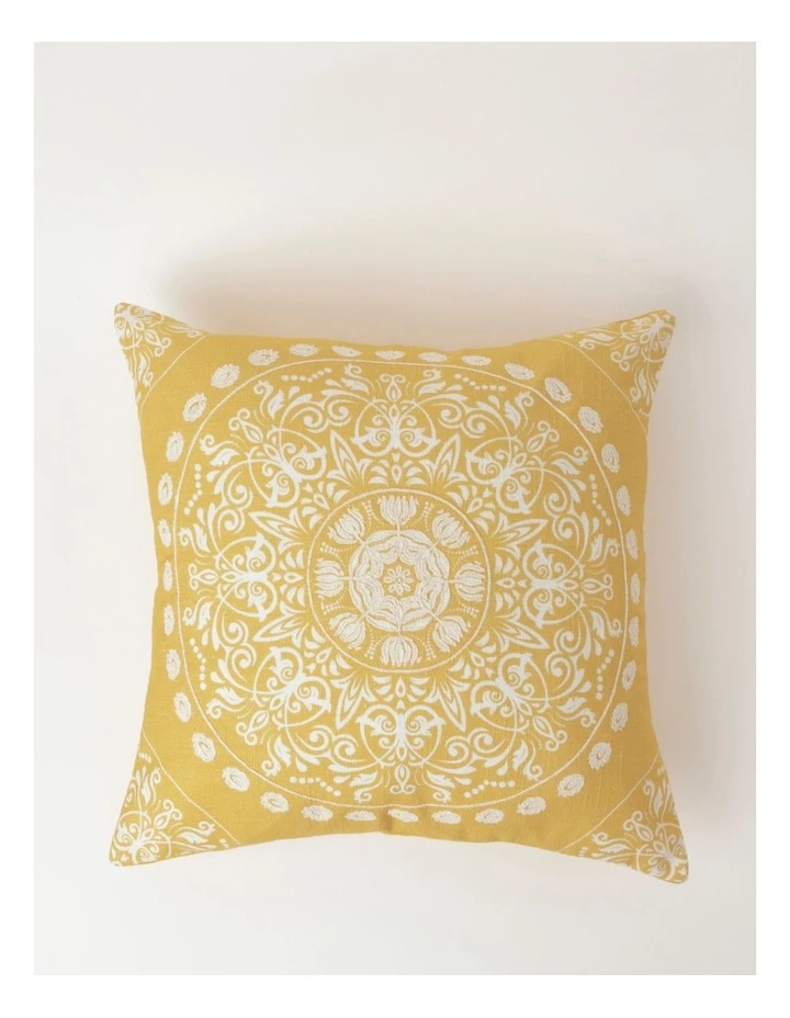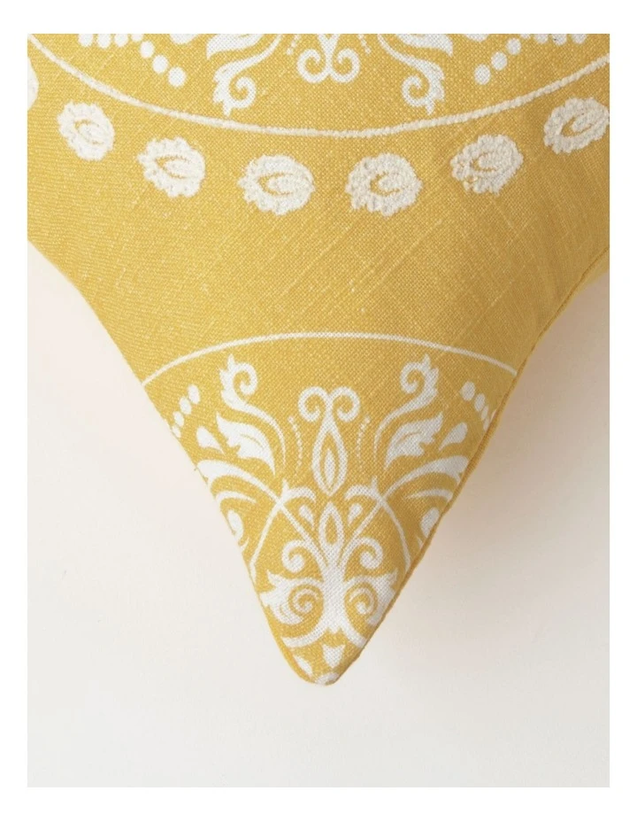 Heritage Lorenzo Medallion Print & Embroidered Cushion in Yellow