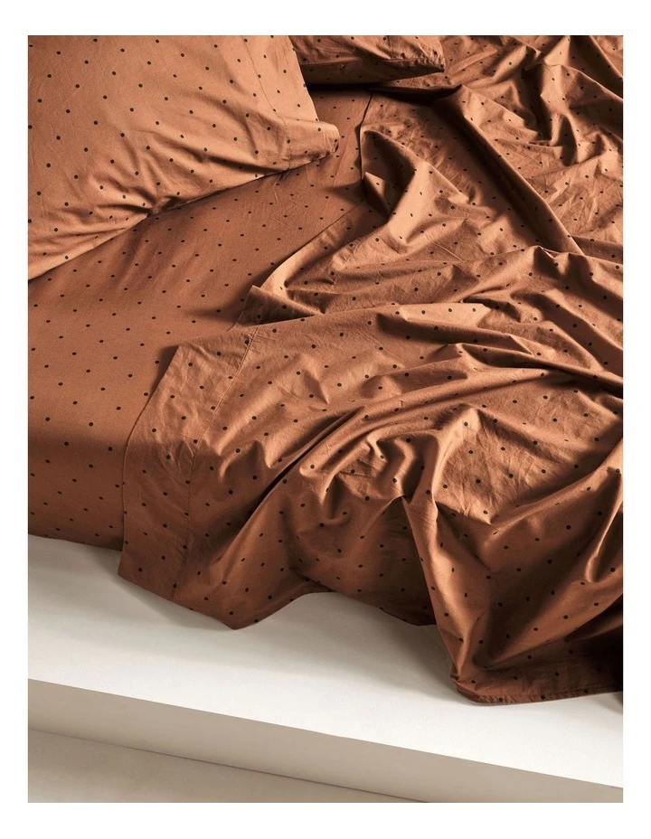 A superbly stylish accompaniment to your printed or plain-dyed bed linen, Vivienne’s polka dot print in pecan is constructed from a 250 thread count washed cotton percale.