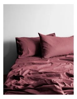 Aura’s Maison Vintage Sheet Set in Syrah is woven from French flax grown sustainably in the coastal regions of France and blended with sustainably sourced cotton, which means less impact on the environment and creates beautifully soft bedlinen.