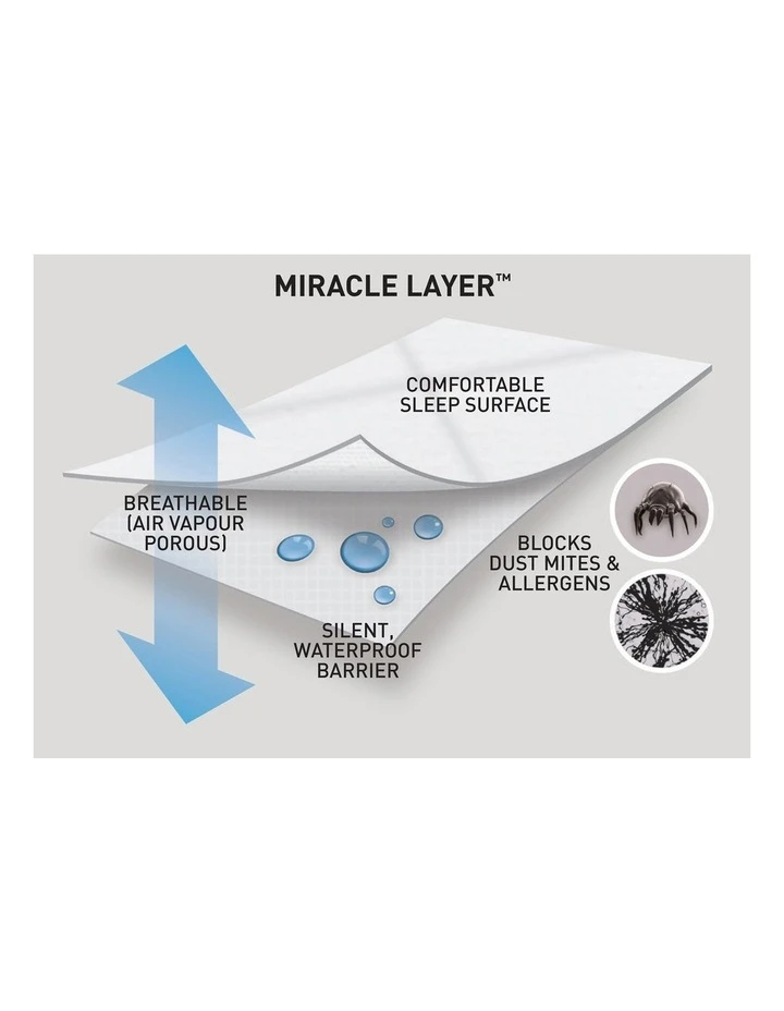 Waterproof, yet breathable, absorbent, soft and comfortable. It is completely waterproof, thanks to the silent and breathable Miracle Layer and absorbs up to 1L on a queen bed.