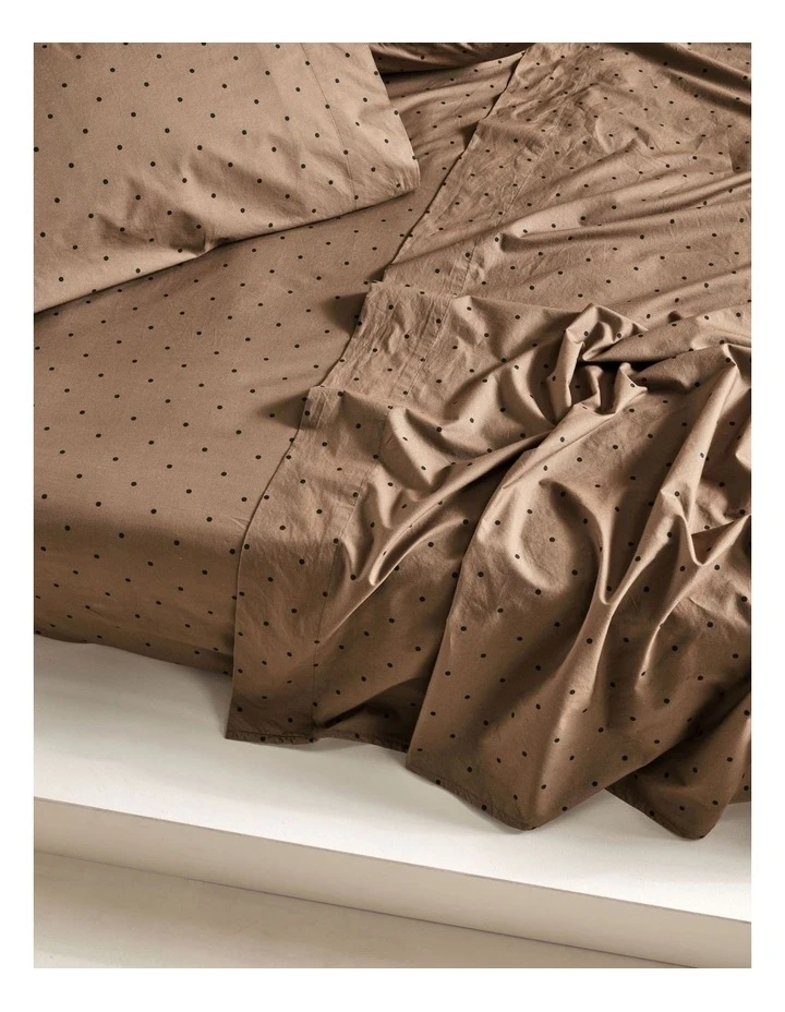 A superbly stylish accompaniment to your printed or plain-dyed bed linen, Vivienne’s polka dot print in timber is constructed from a 250 thread count washed cotton percale.