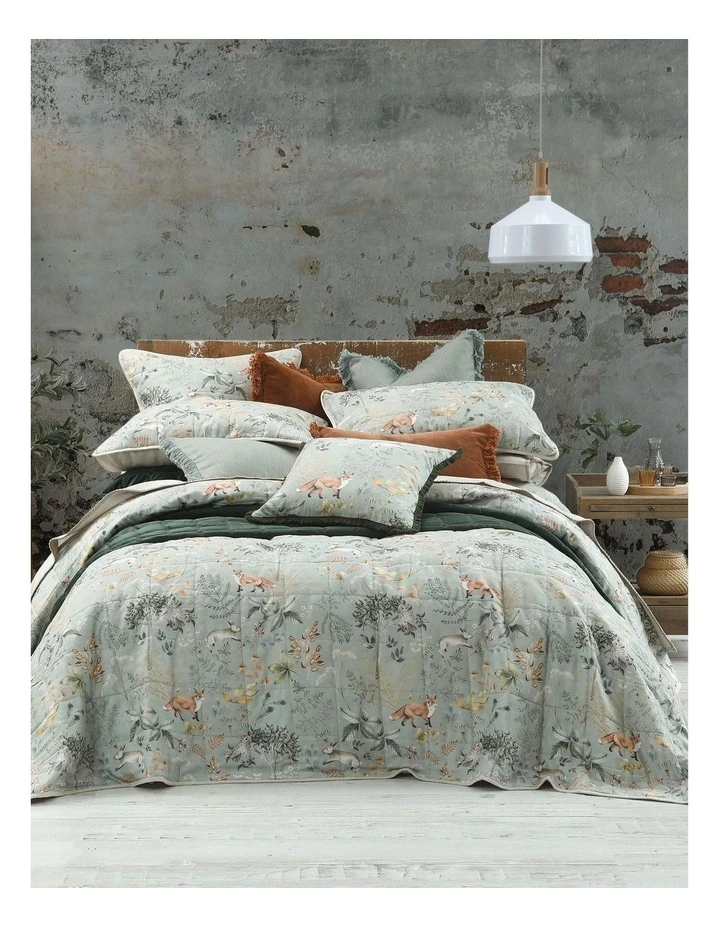 Briar depicts creatures at play in a country garden and arboretum on a soft sage green coloured background, with a natural coloured reverse side.