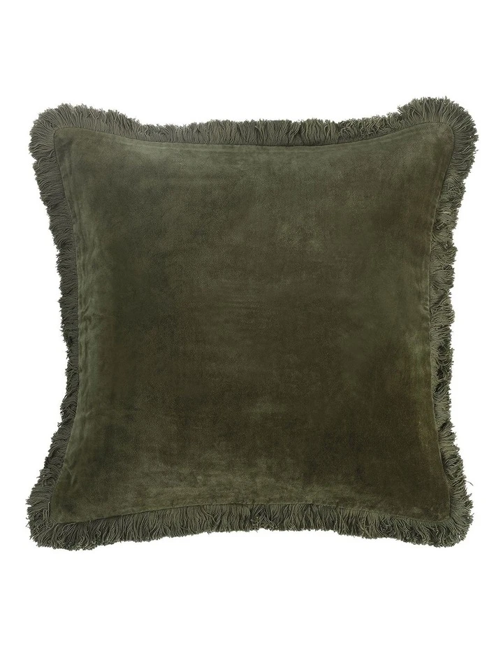 This uber-luxe cushion in olive is constructed from the loveliest, softest cotton velvet.