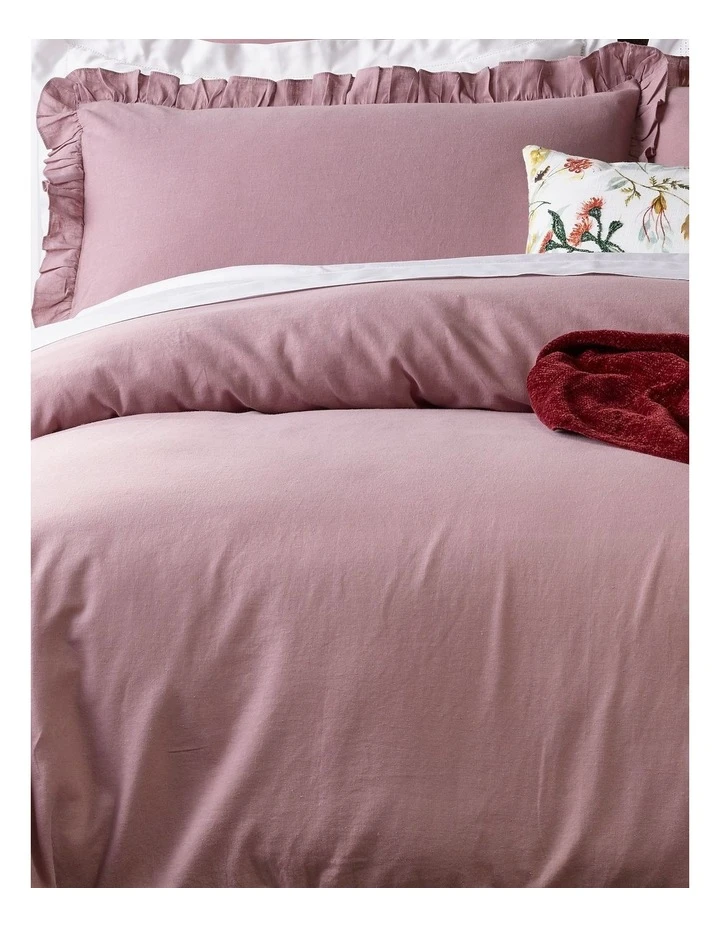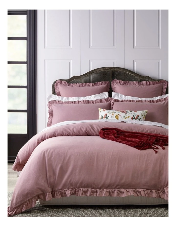 Heritage Brielle Ruffled Edge Linen Cotton Quilt Cover Set in Mauve