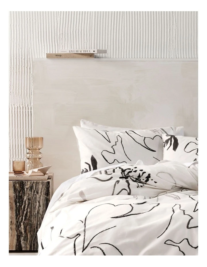 With its fluid illustration style design in a soft, neutral palette, Lennox exudes easy living. This printed cotton percale set is designed to seamlessly fit into an array of interior styles, and pairs perfectly with plains, checks and textures. Lennox looks even more inviting adorned with its coordinating European pillowcases and cushion.