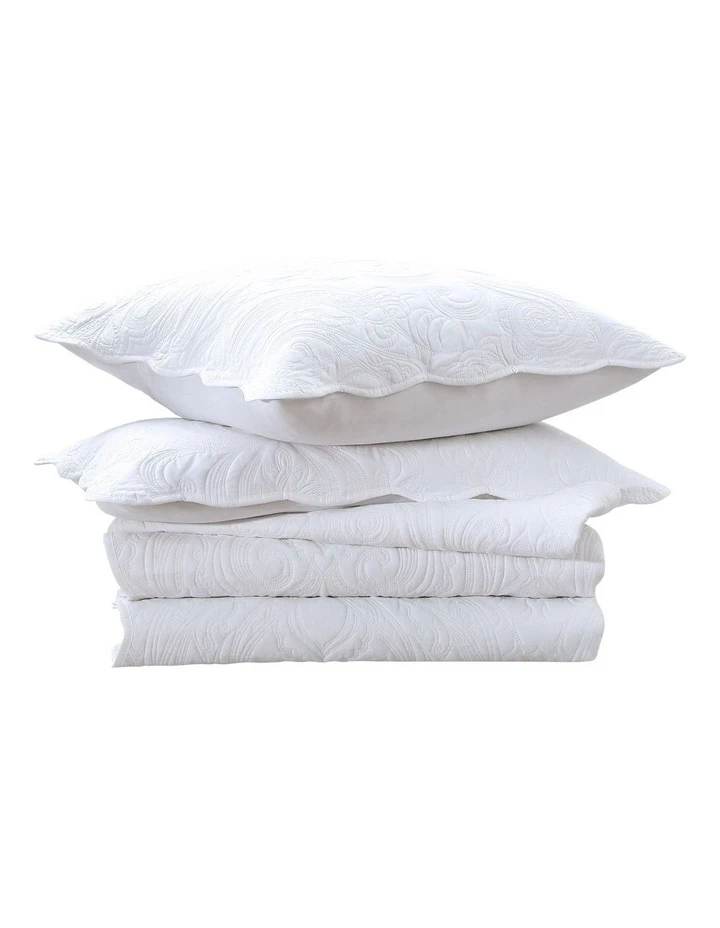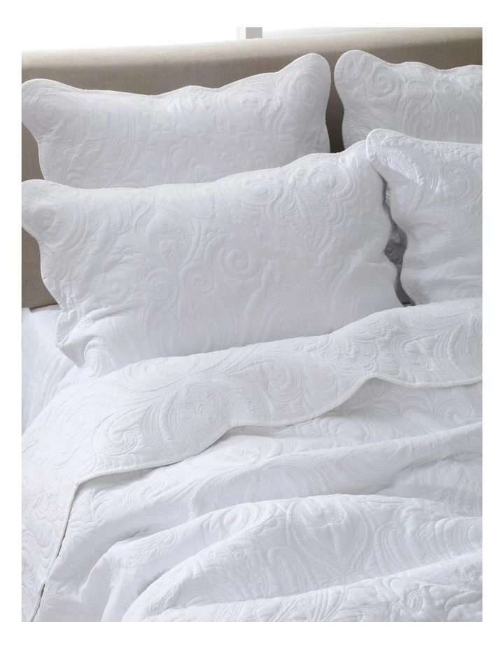 Sophisticated and elegant, this Gabriella embroidered cotton coverlet quilt & shams with scalloped border elevates your bedroom decor. Gabriella coverlet can be used as a layering piece or one its own.