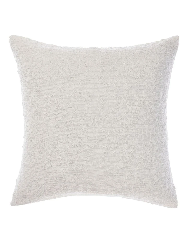 Every bit vintage with its textured cotton, Abigail is a delicately embroidered and stone washed beauty that caters to every diehard romantic. Ties closures add to this alluring, all white theme, which looks ravishing with its matching embroidered European pillowcases and cushion in cotton velvet.