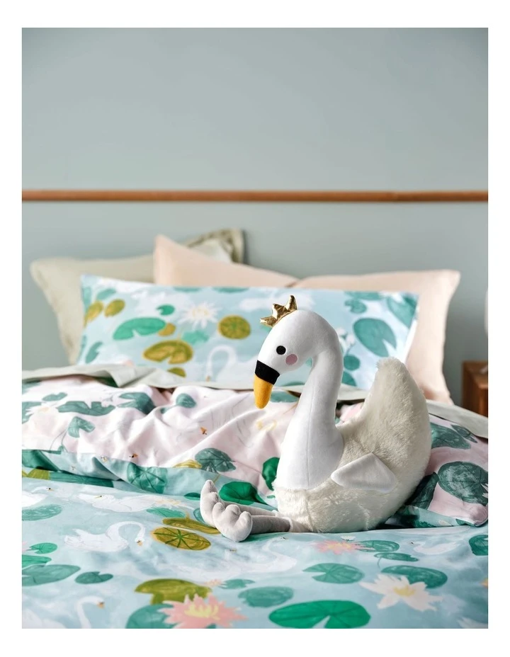 This graceful novelty will keep their bedtime friend company and looks superb styled with our Swanning Around quilt cover set.