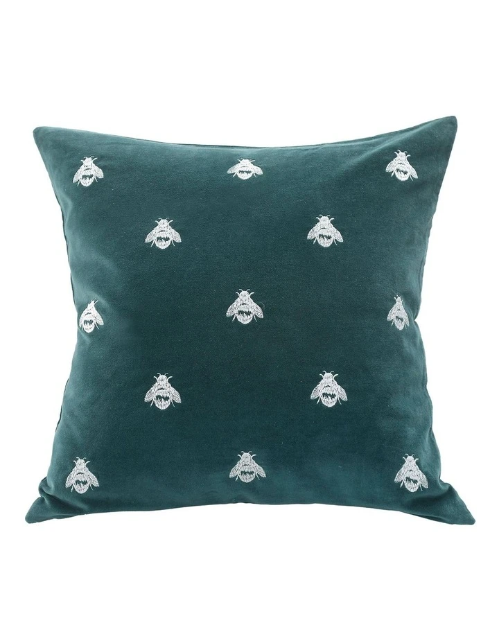 Ultra-soft and beautifully luxurious, this Buzz cushion in emerald is made from cotton velvet with an embroidered gold design throughout.