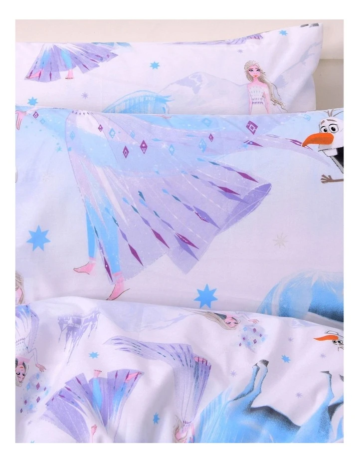 From the mystical world of Frozen, this gorgeous quilt cover set is fit for a princess. Featuring a magical exclusive design, this Cotton Rich set is easy care and perfect for transforming the bedroom of your little Frozen fan. Available in Single and Double bed sizes.