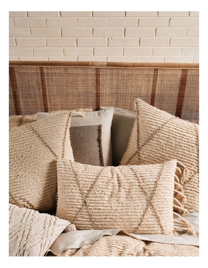 Warm, textural and made from tufted cotton, Asha features stylish diamond patterned details in taupe across a homely sand hue, exuding every inch of retro chalet glamour for your bedroom aesthetic.