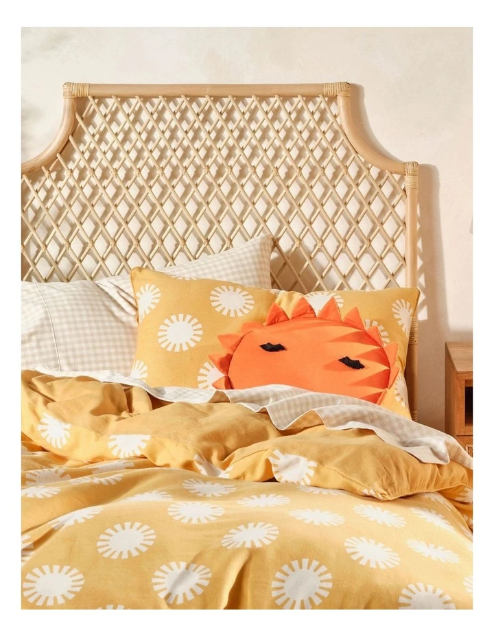 This cushion in apricot looks splendid with its coordinating bed linen, Hello Sunshine.