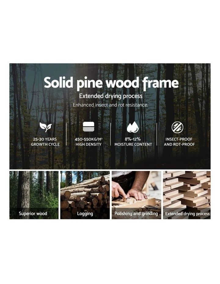 Made of solid pine wood, the Sofie Bed Frame is an all-round functional design that is compatible with most Australian sized mattresses and ideal for use by both young and old alike.