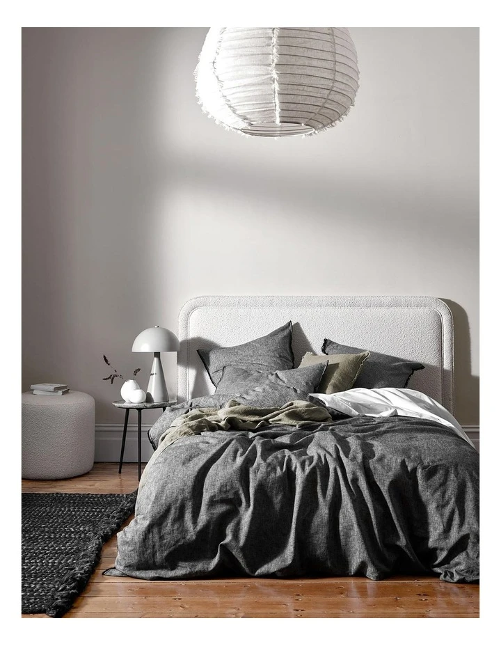 Aura’s luxurious, linen cotton chambray bedlinen in Smoke is designed for a contemporary, relaxed look. Flanked by delectably soft, frayed edges, it has been woven with modern shades of black and white and pre-washed to achieve its tactile, vintage charm. Linen is an eco-friendly and bio-degradable fibre that is softer on the environment and does not require irrigation to grow. All pillowcases are sold individually.