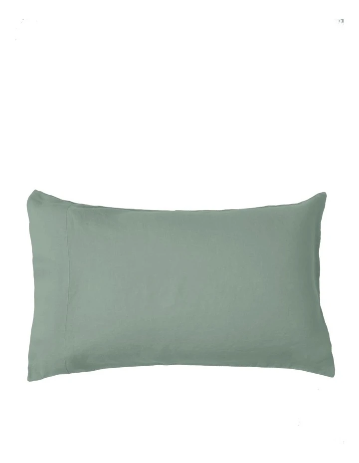 Australian House & Garden Sandy Cape Washed Belgian Linen Sheet Set in Eucalyptus