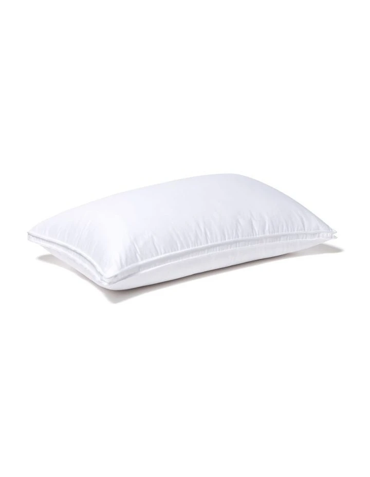Luxury goose down pillow. Standard size and filled with minimum 25% specially enhanced White Goose Down fibres promoting good health, superior comfort and support. Ideal for side and back sleepers. Covered in a high quality piped and 3cm gusseted luxurious silk cotton/rich satin fabric. Ultrafresh treated Approved by the Sensitive Choice program of National Asthma Council of Australia so ideal for asthma sufferers. *Warm hand wash or gentle machine wash