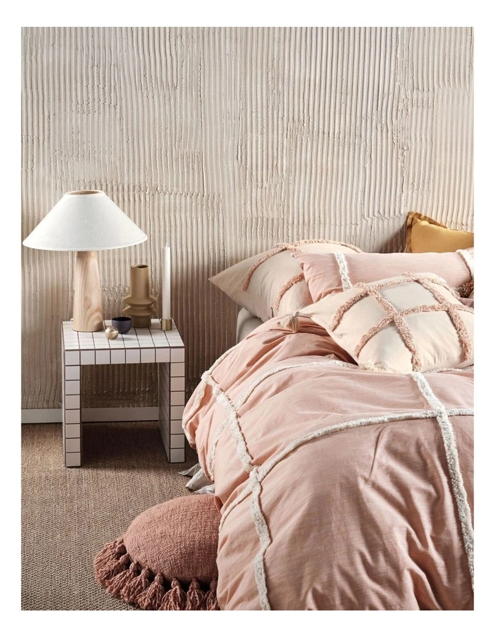Lyndon looks best with its coordinating European pillowcases and cushion with tassels as well as more textured accessories for the ultimate cosy vibe.