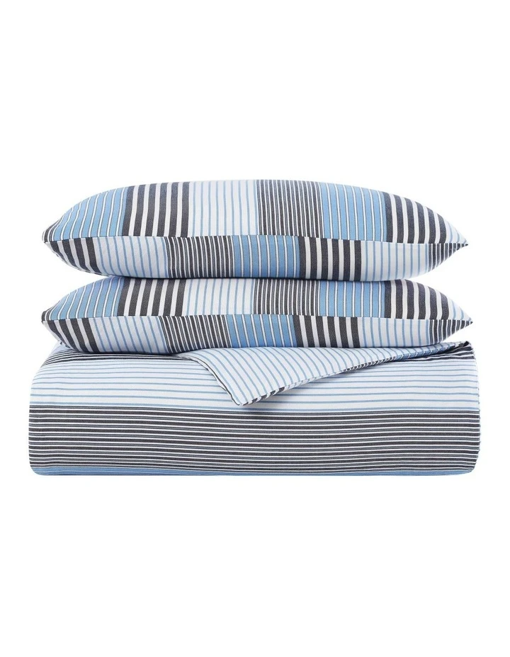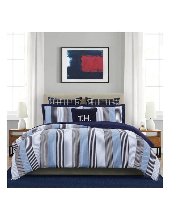 Bold stripes in shades of blue adorn this cotton yarn dyed bedding set by Tommy Hilfiger. Reversing to a mini stipe, this makes a great addition to any bedroom.