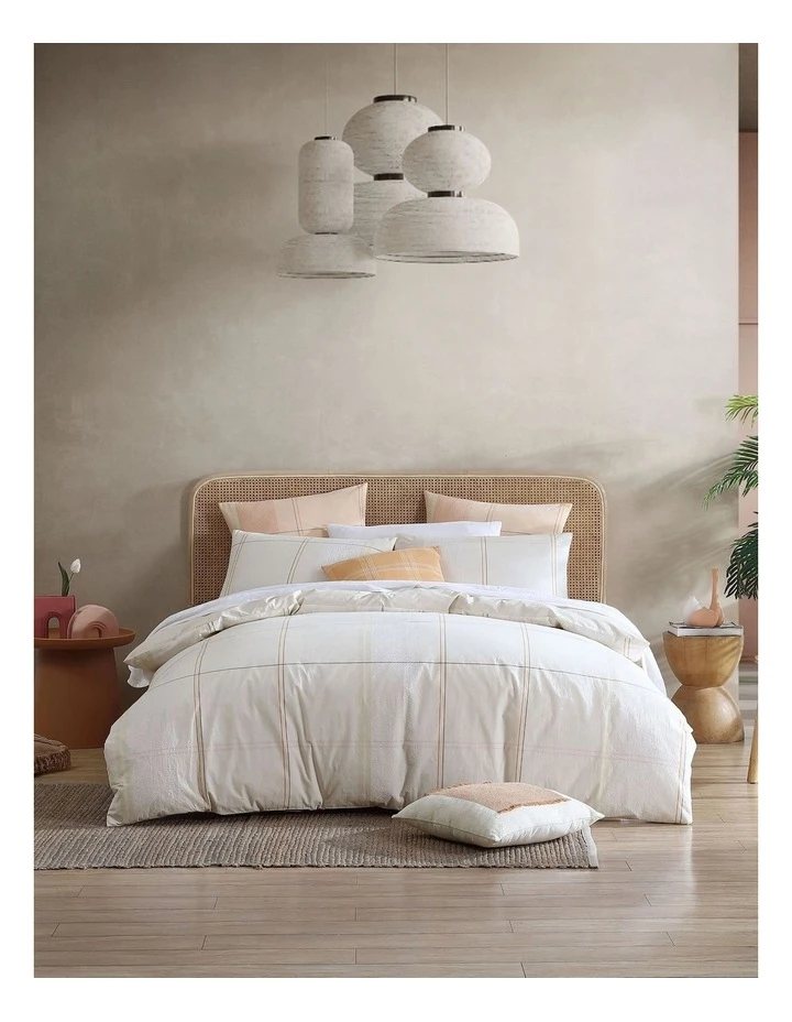 Made from a garment washed cotton, Cobain’s yarn dyed check enjoys a subtle seersucker detail throughout complete with a soothing palette of soft ivory, stone and peony. This design is also complemented by finely coloured, detailed stripes, making it both on trend and versatile. Finish this aesthetic with its coordinating European pillowcases as well as accessories in woven checks and plains.