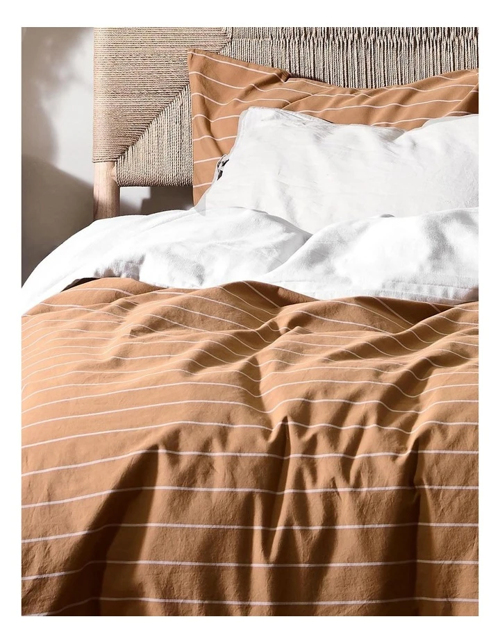 Designed in Melbourne, Aura’s French Stripe Organic cotton percale bedlinen collection in Bronze is all about mindful design and eco-friendly interiors.