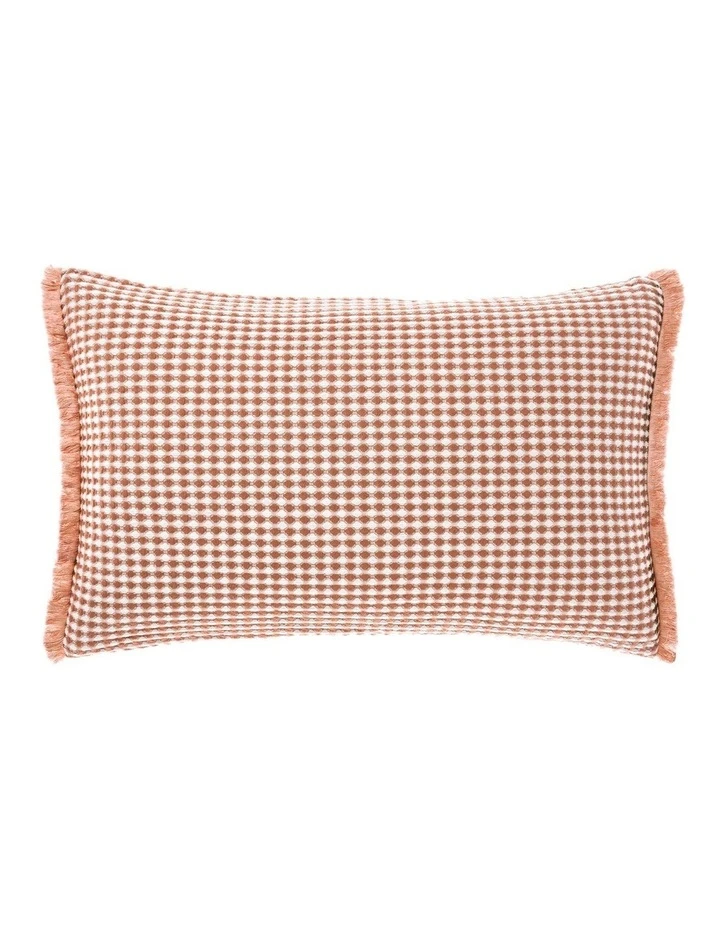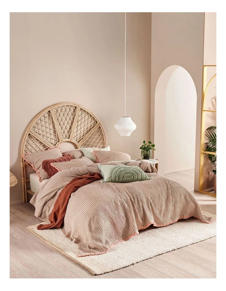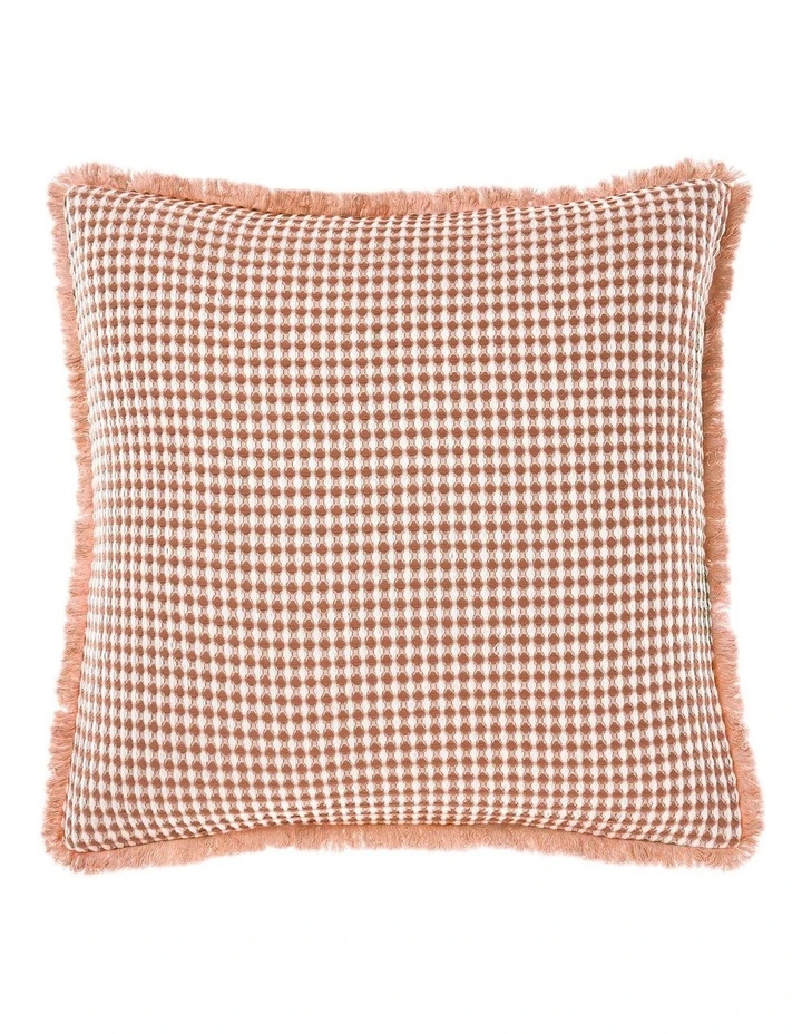 The humble waffle blanket gets a stylish upgrade with Cavo ? a duotone of teal and white in a textured, woven cotton. Finished with a contrasting cotton fringe in coral, this lightweight and equally cosy blanket will effortlessly complement plain-dyed as well as printed bed linens and accessories. Complete this look with its coordinating pillowcase shams and European pillowcases. This size will fit a queen or king size bed.