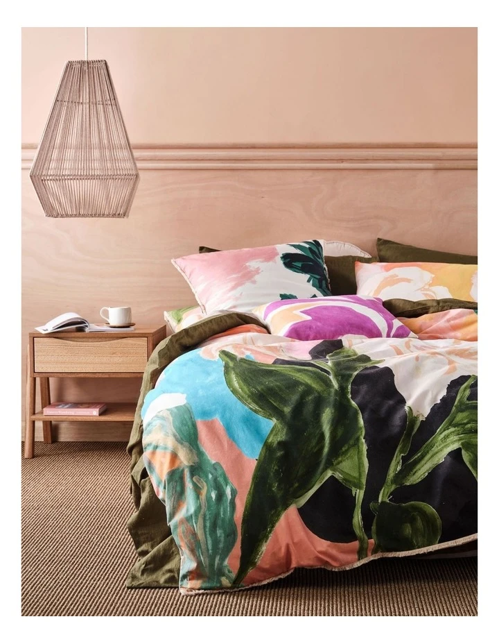 This season’s hottest fashion print is for the brave and bold, with its stunning tribute to expressive matters of the past in a modern-day palette. Sanchez is printed on textured cotton, giving it a luxe feel. Trimmed with cotton fringing, this set feels even more thrilling paired with coordinating European pillowcases and cushion as well as a mix of earthy and bright accessories.