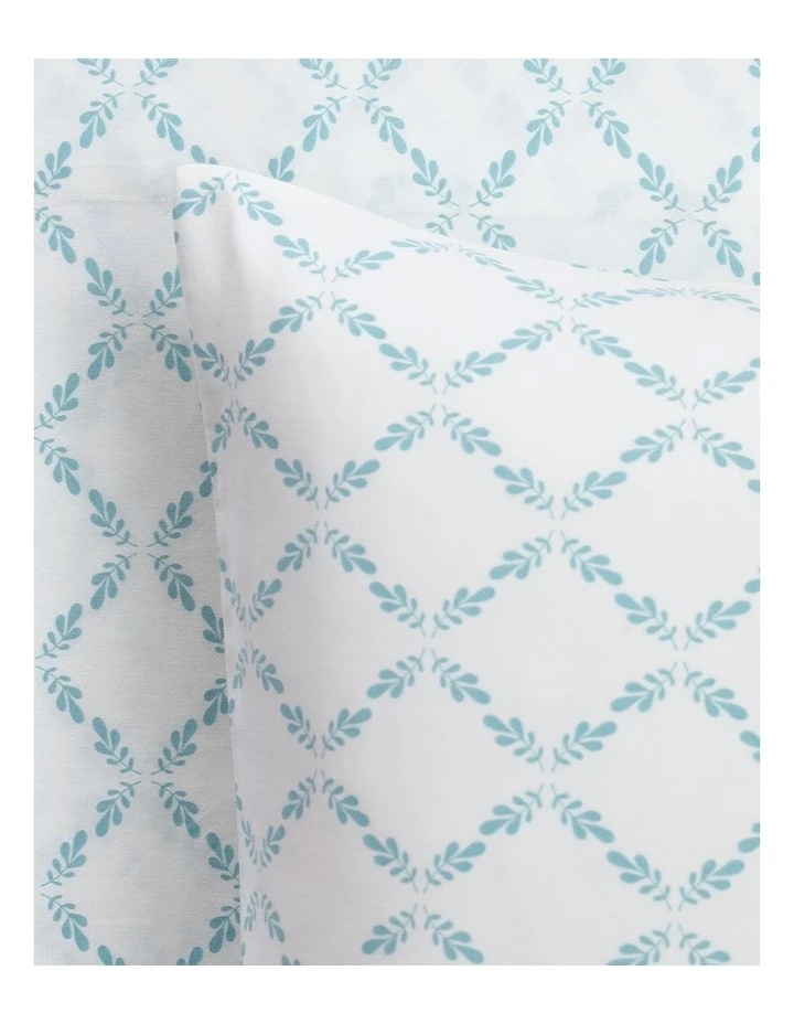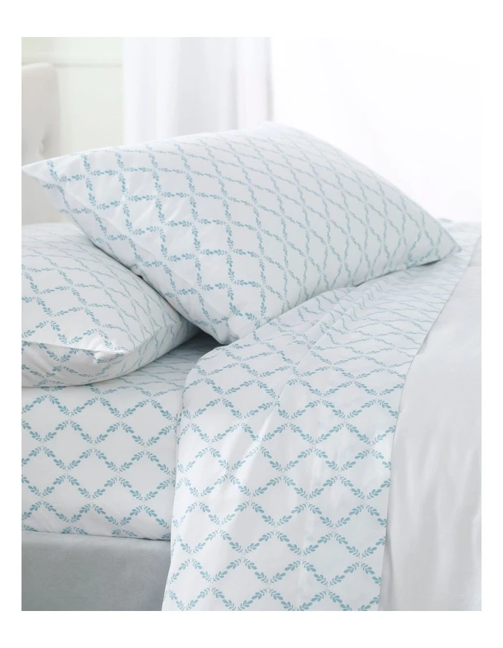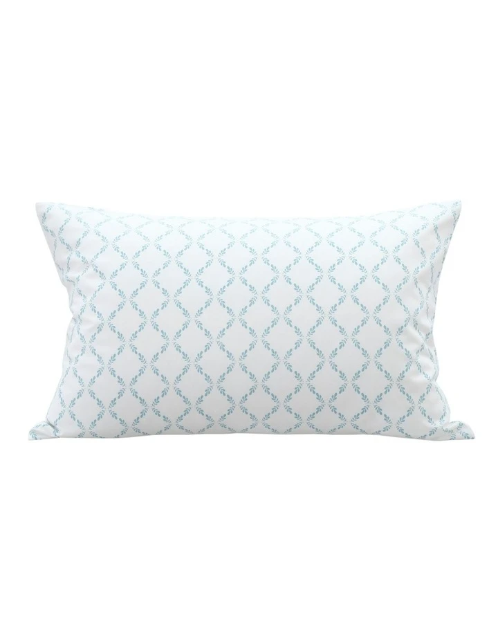 Grace is a delicate trellis pattern of laurel leaves printed on a crisp white cotton ground. The soft pattern works very well to add layered details to any bed.