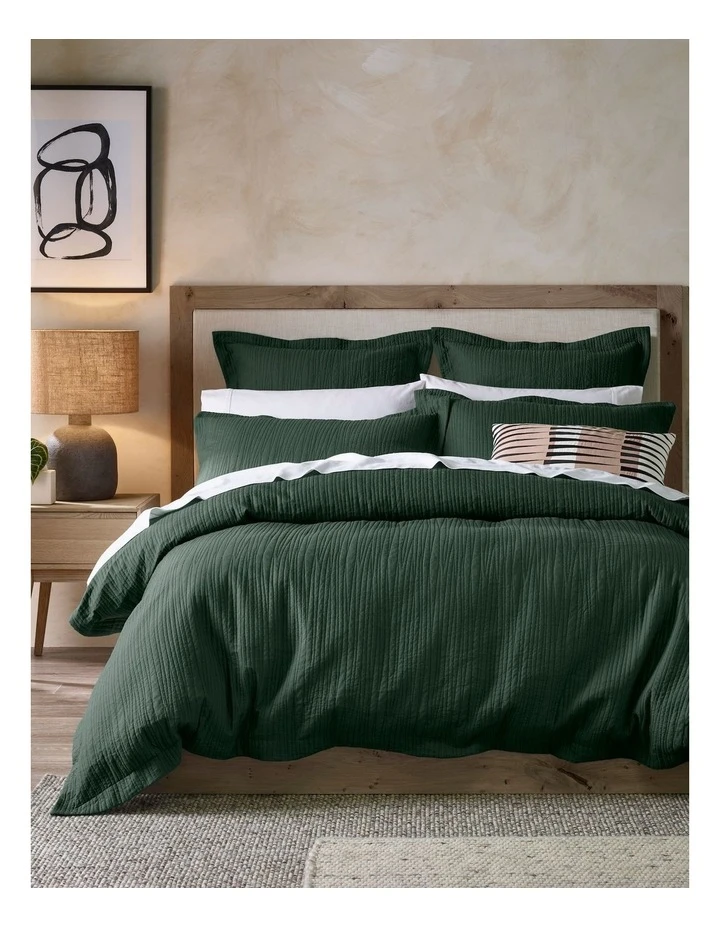 Add a touch of chic to your bedroom with the Allamanda quilt cover set. Designed in an opulent deep emerald, this 180TC cotton quilt cover has a quilted finish for added texture, and a 5cm self-flange.