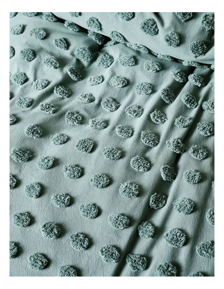 Perfectly everlasting in a serene surf hue, this quilt cover set complete with fluffy spots is a bedroom essential.