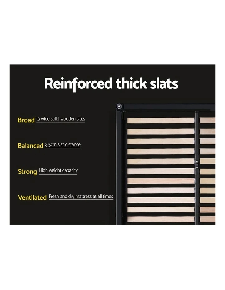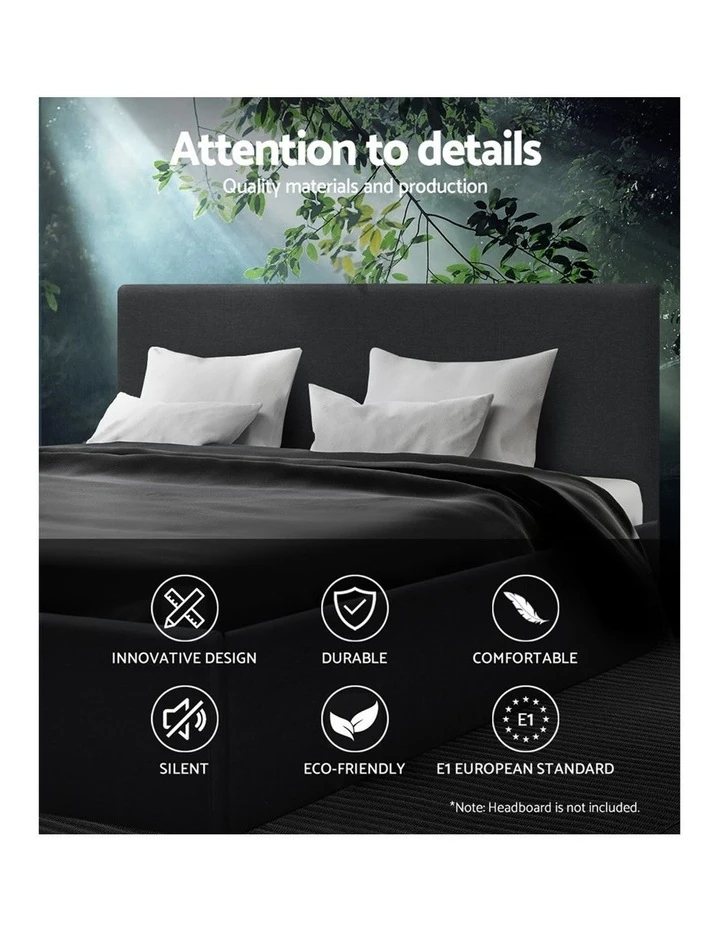 Our Toki Gas-Lift Bed Frame combines exquisite style with great storage practicality. The frame is built with reinforced steel construction while the wooden arched slat frame helps to distribute weight evenly across the framework. Heavy-duty connectors are used throughout the frame to increase its durability and reliability with long -term robust use. And for an elegant finish, the bed frame is padded with high-density foam and upholstered with premium linen fabric. Best of all, the bed frame comes with a gas-lift storage system where you will find acres of space underneath the slatted frame to store all your bedroom and home essentials. And if so desired, the bed frame can be matched with our complementary bed head for a complete look. The bed frame is designed to fit standard Australian-sized mattress.