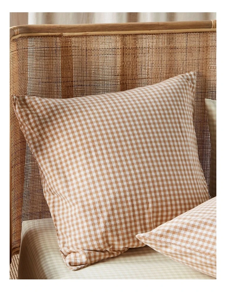 Destined to be a year round favourite, Springsteen’s gingham is made from a beautifully soft washed cotton that’s perfect for those warm nights. The flat sheet and pillowcases are cuffed while the fitted sheet has a 40cm wall, which all looks superb styled with its coordinating quilt cover set and European pillowcases, be it a matching hue or a stylish colour contrast.