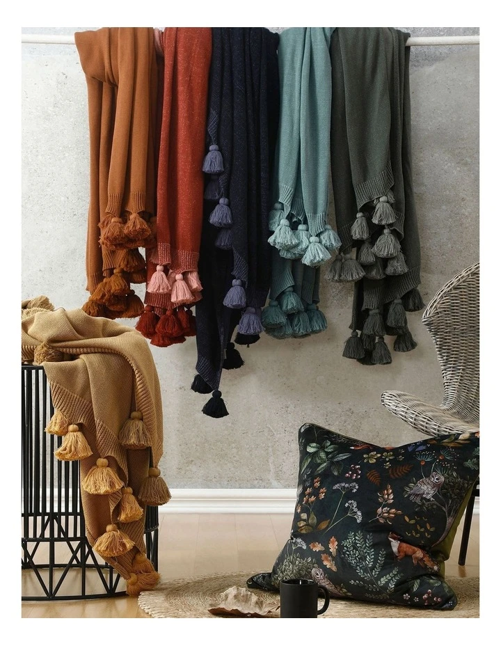 This lovely, two-tone knitted throw in cotton enjoys soft elegant tassels on either side and will drape beautifully anywhere.