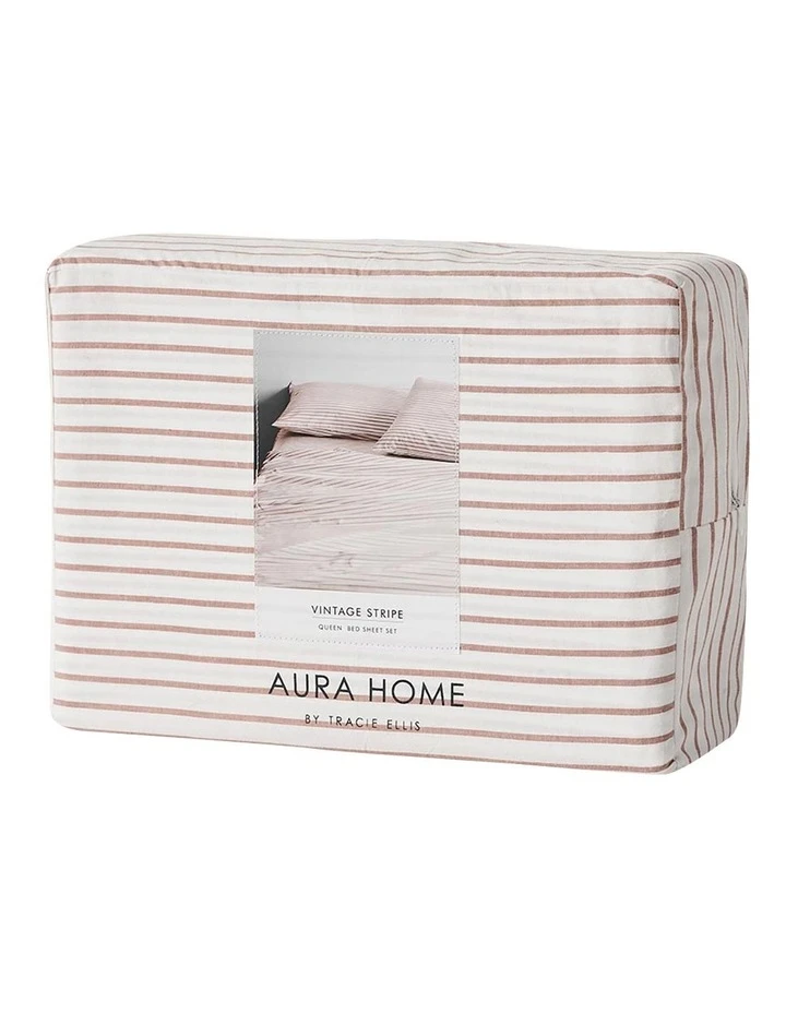 Aura’s Vintage Stripe Sheets in Clay are woven using the highest quality long-staple cotton and finished with a vintage wash to achieve the softest hand-feel possible.