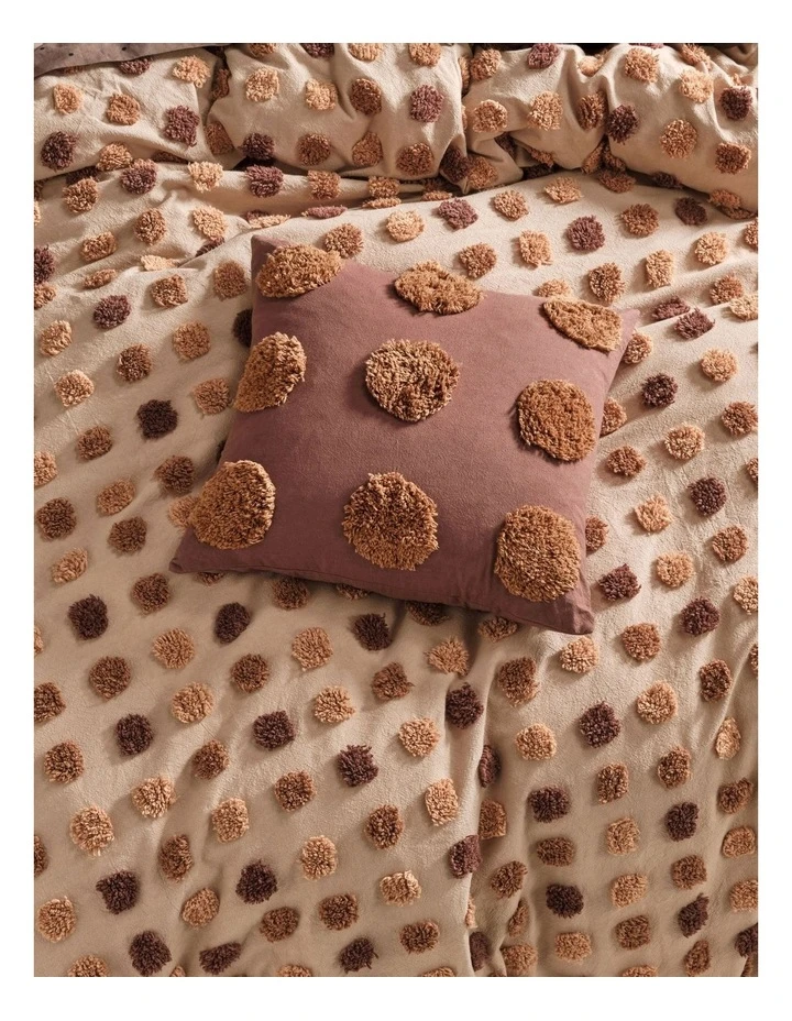 This toasty, chenille-spotted cushion in pecan completes the nostalgic style of our best-selling bed linen, Haze.