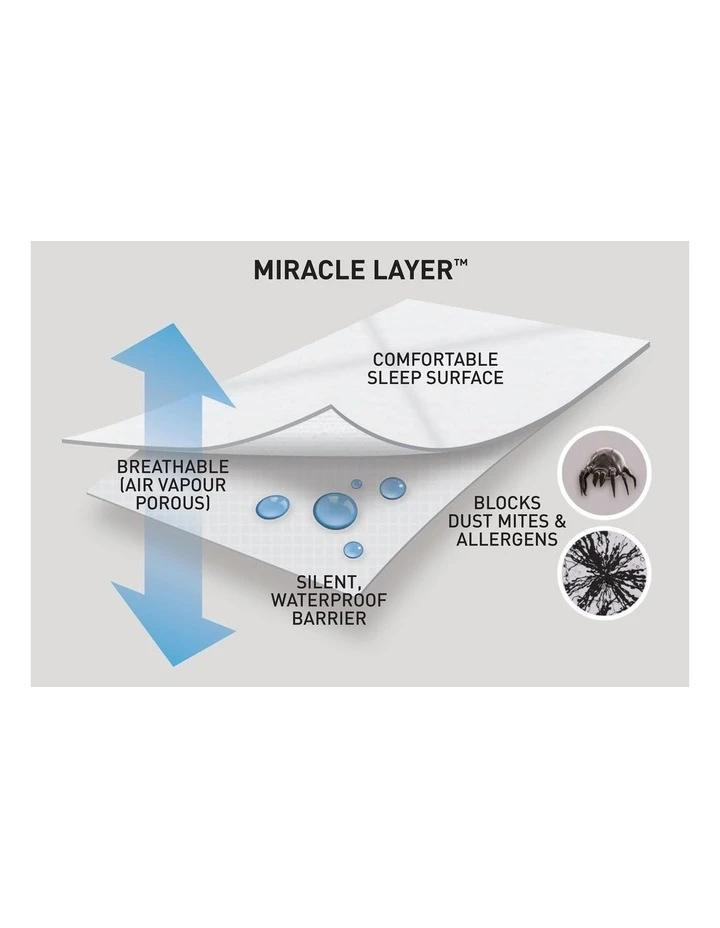 Protecting you from dust mite, mould and bacteria allergens, common causes of Asthma and Rhinitis and is recognised as sensitive skin tried and tested by the Eczema Association of Australasia Waterproof, yet breathable, absorbent, soft and comfortable.