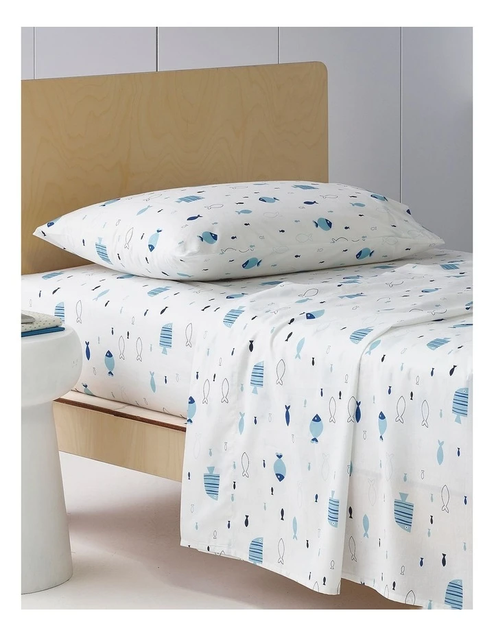 Introducing our Swimming Fish sheet set. Made from 100% cotton, these sheets are breathable with a soft hand feel, featuring a screen-printed fish print. Constructed with a 250TC cotton percale base and reverse, added benefits of durability and super soft touch will give your little ones the best chance at a good night’s sleep. Match back any of our Milkshake quilt covers, or style with one of your own choice.